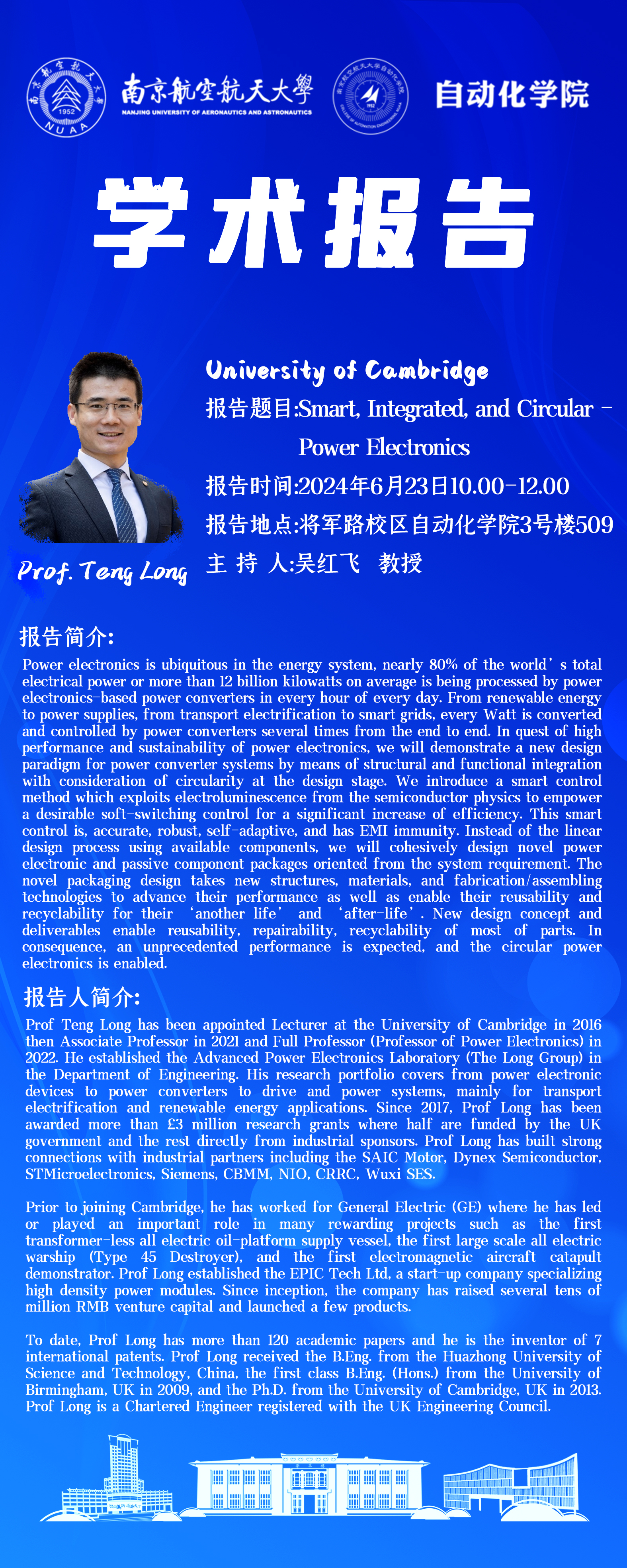 【学术报告】Teng Long:Smart, Integrated, and Circular Power Electronics
